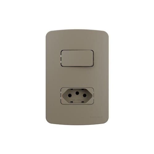 Interruptor Simples 10A e Tomada 2P+T 10A MarGirius B3 Colors com Placa 4x2 Argila