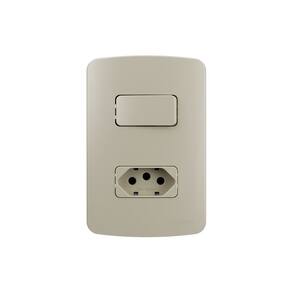 Interruptor Simples 10A e Tomada 2P+T 20A MarGirius B3 Colors com Placa 4x2 Pérola