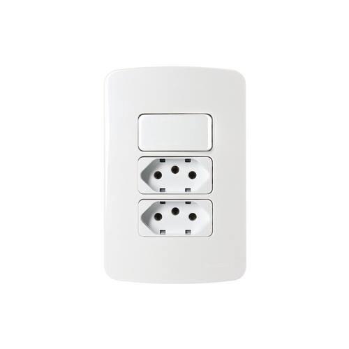 Interruptor Simples 10A e Tomada Dupla 2P+T 10A MarGirius B3 com Placa 4x2 Branco