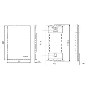 Dimensões AxLxP (mm): Placa: 125x85x8,5 - Suporte: 125,3x65x14,6