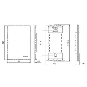 Dimensões AxLxP (mm): Placa: 125x85x8,5 - Suporte: 125,3x65x14,6