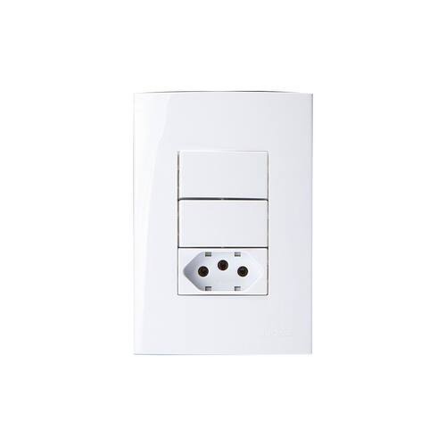 Interruptor Simples Duplo 10A e Tomada 2P+T 20A MarGirius Sleek com Placa 4x2 Branco