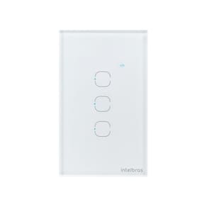 Características técnicas Tensão de alimentação: 100 a 240 V (bivolt automático) 50/60 Hz Potência máxima da carga (FP=1): 1.100 W em 110 V e 2.200 W em 220 V Corrente máxima: 10 A (FP = 1) Consumo de energia máximo (interruptor): 1,2 W Número de teclas touch: 3 Quantidade de saídas (canais): 3 Local de instalação: Caixa 4??2??? para interruptor Bitola máxima de fio: 1,5 mm² Conexão: Zigbee 3.0 IEEE 802.15.4, Bluetooth 4.2 Materiais Vidro temperado 4 mm, plástico com proteção anti-chama e anti-UV Dimensão do produto (L ?? A ?? P) 72 ?? 118 ?? 39 mm Garantia 1 ano Cor Branco Comprimento do produto 3,9 cm Largura do produto 7,2 cm Altura do produto 11,8 cm Peso do produto 0,165 g Conteúdo da embalagem 01 x interruptor 01 x manual de usuário