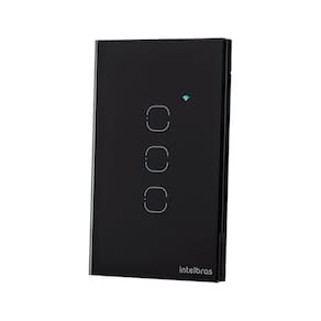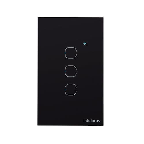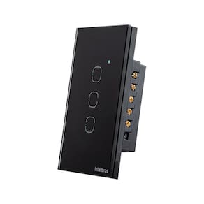 Características técnicas Tensão de alimentação: 100 a 240 V (bivolt automático) 50/60 Hz Potência máxima da carga (FP=1): 1.100 W em 110 V e 2.200 W em 220 V Corrente máxima: 10 A (FP = 1) Consumo de energia máximo (interruptor): 1,2 W Número de teclas touch: 3 Quantidade de saídas (canais): 3 Local de instalação: Caixa 4??2??? para interruptor Bitola máxima de fio: 1,5 mm² Conexão: Zigbee 3.0 IEEE 802.15.4, Bluetooth 4.2 Materiais Vidro temperado 4 mm, plástico com proteção anti-chama e anti-UV Dimensão do produto (L ?? A ?? P) 72 ?? 118 ?? 39 mm Garantia 1 ano Cor Preto Comprimento do produto 3,9 cm Largura do produto 7,2 cm Altura do produto 11,8 cm Peso do produto 0,165 g Conteúdo da embalagem 01 x interruptor 01 x manual de usuário