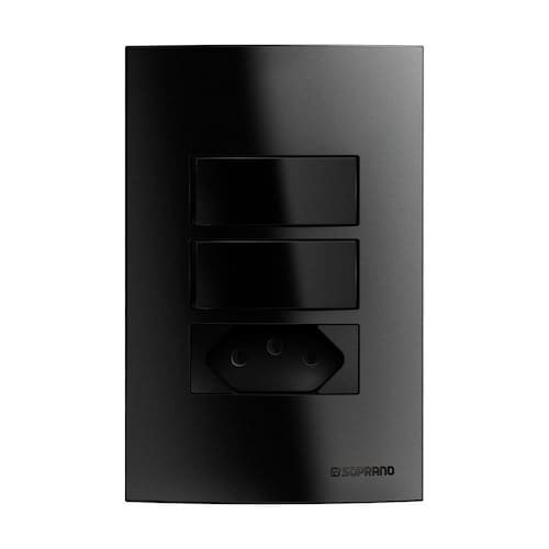 Características do Produto Marca: Soprano Linha: Brava Up Cor: Preto Corrente Máxima Interruptor: 10AX Corrente Máxima Tomada: 10A Tensão Máxima: 250V EAN: 7891154194041