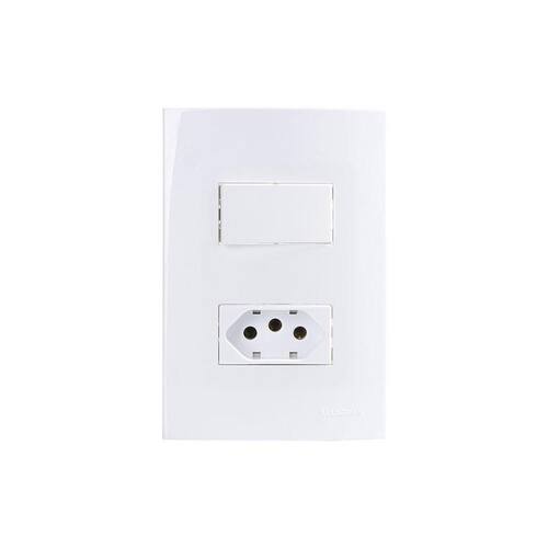 10A e Tomada 2P+T 20A MarGirius Sleek com Placa 4x2 Branco Características Gerais do Produto: Dimensões AxLxP mm : Placa: 125x85x8,5 - Suporte: 125,3x65x14,6 Quantidade de Teclas: 1 Material: Placa em ABS com aditivo contra raio-uv e Suporte em PA6 30% fibra de vidro Acabamento: Alto Brilho Acompanha Placa: Sim Acompanha Suporte: Sim Polos da Tomada: 2 P + Terra Tamanho: 4x2 Corrente : 10A Acompanha Módulo: Sim Tipo: + Tomada Corrente Tomada: 20A Linha: Sleek Quantidade de Módulos: 2 Acompanha o produto: 1 e Tomada 2P+T 20A MarGirius Sleek com Placa e Suporte 4x2 : 5 anos junto ao fabricante Marca: Não Informado