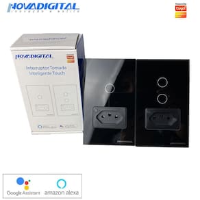 Interruptor e tomada inteligente wi-fi de 1 botão touch na cor preta da novadigital Produto com 3 meses de garantia
