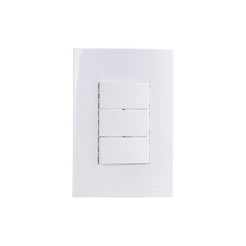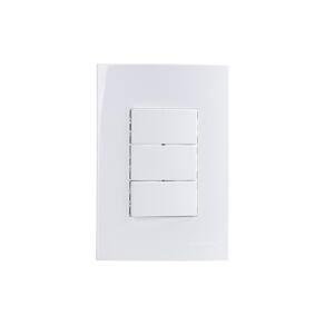 Triplo MarGirius Sleek 10A com Placa 4x2 Branco Características Gerais do Produto: Dimensões AxLxP mm : Placa: 125x85x8,5 - Suporte: 125,3x65x14,6 Quantidade de Teclas: 3 Material: Placa em ABS com aditivo contra raio-uv e Suporte em PA6 30% fibra de vidro Acabamento: Alto Brilho Acompanha Placa: Sim Acompanha Suporte: Sim Tamanho: 4x2 Corrente : 10A Acompanha Módulo: Sim Tipo: Triplo Linha: Sleek Quantidade de Módulos: 3 Acompanha o produto: 1 Triplo MarGirius Sleek com Placa e Suporte 4x2 : 5 anos junto ao fabricante Marca: Não Informado