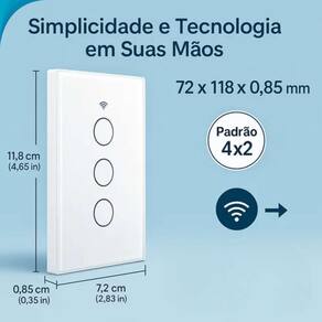 wi-fi comando de voz casa conectada Descrição O inteligente wi-fi é a solução perfeita para modernizar sua casa. Com tecnologia de ponta, ele oferece total controle da iluminação de sua residência diretamente do seu smartphone, sem a necessidade de fios. Compatível com alexa e google home, você pode controlar as luzes através de comandos de voz ou de forma remota, proporcionando praticidade, conforto e eficiência energética. Ideal para quem busca otimizar o dia a dia e tornar a casa mais conectada, este traz inovação e sofisticação para qualquer ambiente. Conteúdo da embalagem 1 inteligente wi-fi Manual de instruções Suporte para instalação Parafusos e acessórios para fixação Características Controle remoto via aplicativo Compatível com alexa e google home Tecnologia wi-fi sem fio Controle por voz e por app Fácil instalação Design moderno e compacto Economia de energia Funciona com qualquer tipo de lâmpada led, incandescente, fluorescente Compatível com smartphones android e ios Especificações Potência máxima: 2000w Conectividade: wi-fi Tipo de : touch sensível Material: plástico resistente Marca: Não Informado