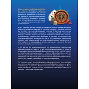 O livro Introdução ao cálculo de probabilidades – Volume I é dirigido a professores, estudantes e investigadores da área das matemáticas, em particular das probabilidades, e a todos os interessados em desenvolver o pensamento probabilístico, tão necessário para a análise de fenômenos aleatórios e para a tomada de decisões em condições de incerteza. A obra contempla em cada capítulo um resumo de conceitos, axiomas e fórmulas seguidos de uma ampla quantidade de problemas resolvidos e problemas propostos que permitem a compreensão do aparato conceitual da disciplina, assim como a aplicação prática do conteúdo, o que propicia a assimilação, a fixação e o aprofundamento dos conteúdos. Destaca-se a aplicação dos conteúdos em situações do cotidiano com exemplos contextualizados à realidade do estudante, o que constitui uma importante componente motivacional. No final do livro, inclui-se um capítulo com a resolução passo a passo de cada um dos problemas propostos, que permitirão ao leitor realizar uma autoavaliação e retroalimentar-se com respeito às diferentes temáticas abordadas na presente obra. O livro tem um viés didático-metodológico, pois está escrito em uma linguagem simples e acessível para quem dá os seus primeiros passos no estudo do cálculo de probabilidades, e os problemas estão dispostos dos mais simples aos mais complexos. Inclui os objetivos a alcançar com o estudo de cada capítulo, faz menção aos conteúdos prévios a ter em conta no estudo de cada tópico, bem como os pontos fundamentais e as dificuldades, para os quais a autora realiza uma orientação metodológica para a melhor compreensão no estudo de cada temática. Por meio desta obra, o leitor tem à sua disposição uma ferramenta que o auxiliará a aprender, relembrar ou aprofundar o corpo teórico da disciplina, assim como aplicá-lo na resolução de problemas. Atendendo ao cariz didático-metodológico da obra, a autora considera que pode ser utilizada por professores e estudantes como livro de texto para a disciplina de probabilidades.