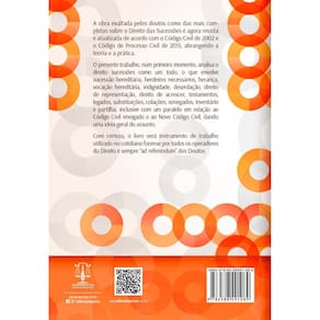Sinopse: A obra exaltada pelos doutos como das mais completas sobre o Direito das Sucessões é agora revista e atualizada de acordo com o Código Civil de 2002 e o Código de Processo Civil de 2015, abrangendo a teoria e a prática.