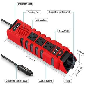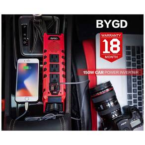 Inversor de energia para carro Premium de 150 W com 3 tomadas CA, duas portas USB de carregamento rápido 2,4A e uma tomada de isqueiro DC, cabo de 78cm suficiente para você usar em qualquer lugar do carro. Fornece velocidade máxima e energia contínua estável para dispositivos. Ele resolverá o problema de energia para sua longa jornada, camping, entretenimento de carro e emergências. Estável e o conversor de carro feito de material de isolamento e de resistência ao fogo ABS, não o incomoda na estrada e ajuda a reduzir o calor e evita escassez, o fusível embutido fornece proteção total ao seu dispositivo contra curto circuito, proteção de baixa tensão, sobrecarga, sobretensão, temperatura excessiva. Compacto e portátil 23 x 4,5 x 6cm, Peso leve 400g. Cabos de 78cm, o design exclusivo é mais científico e compacto, melhorando consideravelmente a usabilidade e a portabilidade do inversor de carro. Aplicação ampla um bom inversor de energia oferece grande comodidade em viagens, qualquer pessoa em movimento em um carro, caminhão, trailer ou lancha pode tirar proveito de um inversor de energia. IPad, notebook, PSP e outros dispositivos. Serviço profissional Escolha o adaptador do inversor de potência do carro BYGD. Dispositivos de carregamento inteligentes, basta conectar o isqueiro e ligar o carro, o inversor estará pronto, desligará o carro, o inversor inteligente proteger todos os dispositivos e bateria do carro. 2 componentes de alta qualidade conversor de carro produzir por BYGD. 3 ventilador silencioso competitivo outras marcas ventilador barulhento, não vai incomodá lo na estrada. 4 O fusível embutido fornece proteção total aos seus dispositivos, mantém o isqueiro do seu carro. Lista de pacotes 1 x inversor de potência de 150W 1 x manual do usuário Dados do produto Potência total 150W Entrada DC 12V , 20A Saída CA 110V 120V Saída USB DC 5V , 2.4A Potência de pico 300W Frequência 50 , 60Hz Forma de onda de saída onda senoidal modificada Eficiência 80 90 Proteção contra sobrecarga Proteção contra sobreaquecimento Proteção contra curto circuito Proteção contra baixa tensão Proteção contra sobretensão NW 400g