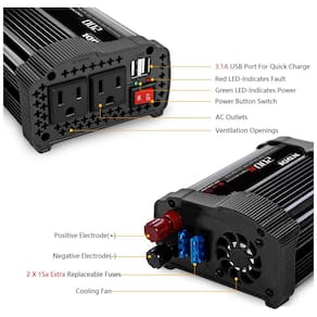 Recursos NDDI Poderoso inversor de carro de 200 watts de potência contínua de CC para CA potência de pico de 400 watts, com 2 portas USB 3.1A para carregamento, e é leve e portátil. Multi proteção Car Power Inverter embutido com 2 fusíveis para proteger seu dispositivo contra superaquecimento, carga de sub e sobretensão, sobrecarga e curto circuito. 2 vias de conexão vem com um plugue de isqueiro do carro e um par de grampos de bateria de jacaré , conveniente para conectar o soquete do isqueiro ou prender na bateria de 12V. O soquete de isqueiro do carro em geral suporta pico de 150W, mais alto do que por favor, use os grampos para conectar a bateria diretamente. Ventilador de refrigeração o inversor de energia do carro equipado com um ventilador inteligente, protege o inversor contra superaquecimento. Fácil de transportar Design de tamanho pequeno de 15, x x 6,, ideal para viagens longas de carro, camping e emergência, etc. A NDDI é uma empresa de alta tecnologia para o desenvolvimento, fabricação e ização de conversores de automóveis avançados, sistema solar, carregador de energia de alta frequência e qualidade. Nosso objetivo é fornecer as melhores soluções profissionais de energia para você NOTA. Evite operar o inversor enquanto a mão estiver molhada. Evite inserir a CA no inversor de energia. Evite usar produtos que excedam o valor máximo do produto. Evite usar o plugue do isqueiro ao usar o inversor em dispositivos acima de 200W. Evite deixar o inversor de energia nos estados ON enquanto o carro estiver desligado. Evite a exposição prolongada à luz solar, resultando em temperatura excessiva ou escaldadura do produto. Especificações Terno para bateria de 12V. Saída 110V. Potência 200W. Potência de pico 400W. Forma de onda de saída onda senoidal modificada. Portas de carregamento USB 3.1Amp compartilhada. Frequência 50 , 60Hz. Peso do inversor 500 gramas. Dimensões L x W x H 15, x x 6, na embalagem incluída 1 inversor de energia de 200W, 2 clipes de bateria, 2 fusíveis 30, 1 plugue de isqueiro, 1 manual do usuário