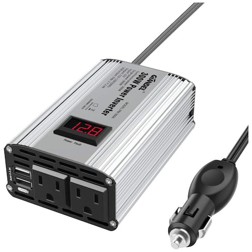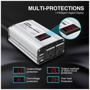 Fornece alimentação contínua de CC a CA de 300 Watts e energia instantânea de 600 Watts, com 2 tomadas CA e 2 portas USB Carregamento inteligente o inversor de energia é projetado com 2 portas de carregamento USB inteligentes, detecta automaticamente seus dispositivos para fornecer a velocidade de carregamento mais rápida até 2,ères por porta, 4,ères máx. Totalmente proteções de segurança Sobre tensão, Baixa tensão, Sobrecarga, Curto circuito, Sobreaquecimento, Proteção contra inversão de polaridade fusível. Tecnologia de partida suave, função de reinicialização automática A carcaça durável em liga de alumínio fornece proteção avançada contra quedas e batidas. O ventilador de refrigeração inteligente integrado ajuda a reduzir o calor e evita a escassez. Projeto isolado de entrada , saída. Ventilador de refrigeração de controle térmico de alta velocidade Marca: Não Informado