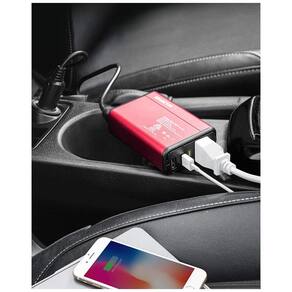 PROTEÇÃO DE TENSÃO DE ISOLAMENTO PATENTEADA ISELECTOR 150w inversor de energia para carro com 2 portas USB inteligentes que podem detectar automaticamente seus dispositivos para fornecer velocidade de carregamento ideal de até 2,4 A por porta saída total máxima de 4,2 A, e uma tomada de 110 V CA ótima para carregar laptop, câmera e dispositivos maiores PORTA DE SEGURANÇA e VENTILADOR DE ARREFECIMENTO Tomadas CA com porta de segurança embutida protegendo as crianças de choques elétricos inesperados. Ventiladores exclusivos e design de ventilador inteligente tornam este adaptador de energia para carro mais fácil de dissipar o calor MULTI PROTEÇÃO Conversor de energia para carro Fusível integrado e proteção total contra superaquecimento, carregamento de sub e sobretensão, curto circuito, sobrecargas e sobrecarga ULTRA COMPACTO e LEVE Design do tamanho de um iPhone e caixa de alumínio durável ideal para uso em férias, viagens de trabalho e camping. O plugue do isqueiro de 32 polegadas, faz com que o conversor de energia do carro seja mais fácil de conectar a quase todos os veículos Certificação ETL Nosso inversor de energia 150W com certificação ETL fornece 150 watts contínuos de DC para AC e 250 Watts de potência de pico Marca: Não Informado