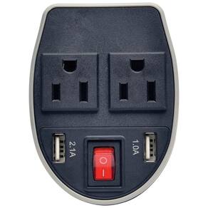 CONVERTER 12V DC PARA 120V AC POWER 200W Car Power Inverter c , 2 tomadas AC e 2 portas USB fornecem 400 Watt de potência de pico, ótimo para carregar laptop, tablet, bomba tirar leite, nebulizador, console de jogos, kindle, TV, DVD players, luzes, iPad e muito mais VERSÍTIL, CARREGAMENTO RÁPIDO Além de duas tomadas CA, o inversor de carro PV200USB também possui 2 portas de carregamento USB 2.1A e 1A para carregamento multiuso para seu veículo. Ele é projetado para carregar dispositivos de baixa potência, como telefones, tablets, PCs e baterias de íon de lítio padrão e outras baterias. Os fusíveis não queimam sob carga normal ou máxima DESIGN CONVIENENTE DO PORTA COPO se encaixa perfeitamente no porta copos do seu veículo, tornando o ideal para uso no carro em férias, viagens de trabalho e camping. Tomada de isqueiro de 12 volts significa que o inversor de energia pode ser conectado a quase qualquer veículo RECURSOS DE SEGURANÇA PREMIUM fusível embutido de 20 A para proteger seu dispositivo. O design de carregamento oferece proteção contra superaquecimento, carregamento de sub e sobretensão, curto circuito, sobrecargas e sobrecarga Marca: Não Informado