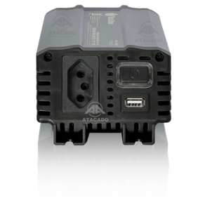 Com saída USB. Inclui proteção contra curto-circuito. Tem proteção contra sobrecarga. Com proteção contra superaquecimento. Voltagem máxima de entrada: 12V. Voltagem máxima de saída: 110V.