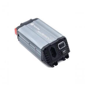 Com o inversor de voltagem da Tech One, é possível ter uma tomada dentro do seu carro, caminhão, motorhome etc. O aparelho transforma a corrente direta do veículo em corrente alternada (com onda modificada), criando inúmeras possibilidades, tais como: - Carregar um notebook (se você é motorista de aplicativo, pode disponibilizar um inversor para o seu cliente carregar o notebook dele, levando mais conforto e um diferencial no serviço ofertado. Que tal?); - TV no acampamento (viajou, foi acampar, mas não quer perder o jogo? Se tiver uma TV pequena, pode ligar na tomada do inversor que está tudo certo! Tudo para levar mais comodidade a você, seus amigos e família). - Acessibilidade (para quem possui cadeira de rodas elétrica, pode carregá-la no carro). - Entretenimento (caso você possua um encosto de cabeça acoplável e queira conectá-lo a um videogame para seu filho(a) jogar, é só ligar o aparelho na tomada do inversor). O inversor aqui apresentado é um modelo de 500W que transforma 12V DC em 110V AC. Ele também possui um sistema de proteção contra sobrecarga por utilização inadequada seja por: ser exigido uma potência superior àquela com que o produto trabalha, falta de corrente de entrada ou superaquecimento. *Imagens meramente ilustrativas. Potência pico: 500WPotência nominal: 250WAcompanha cabo, de acordo com a potência nominalVoltagem de entrada: 12V DCVoltagem de trabalho de entrada: 11.8~15.5V DCVoltagem de saída (informada):110V ACVoltagem de saída (trabalho): 110~135V ACUmidade máxima de trabalho: 65%Corrente inicial: 1.2ACorrente de trabalho: 50AForma de onda: modificadaFrequência: 60Hz. USB: 5V, 2 /1.7ATemperatura de trabalho: 30~45Temperatura máxima suportada: -5 ~ 105MEDIDAS DA EMBALAGEMPeso: 0.84KgAltura: 7.5cmLargura: 15.5cmComprimento: 26cmCONTEÚDO DA EMBALAGEM1 inversor1 adaptador 12V2 parafusos4 arroelas2 porcas