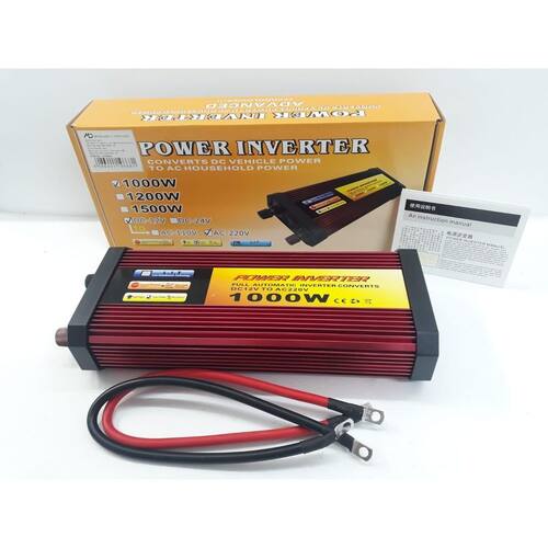 Inversor Power Inverter 1000W 12V para 220V Único - Inversor Power Inverter 1000W 12V para 220V O inversor de corrente é um dispositivo de tensão Ac que converte 12V Dc para 220V Ac, utilizando o mais moderno circuito de ondas. Todo o processo é executado por uma Cpu inteligente. Pode ser utilizado em veículo para fornecer energia ao seu notebook, câmera digital, Celular, Tablet, , carregador de pilha ou bateria e etc. É também apropriado para bairros onde o fornecimento de energia elétrica é instável e/ou provido por energia solar ou eólica. Além disso, o inversor fornece energia estável para eletrodomésticos como Tv, Dvd, lâmpada, videogames, etc. Para saber se este produto irá servir para funcionar com o seu equipamento, basta olhar qual o consumo em Watts do seu equipamento. Informações técnicas Produto: Novo Aparelhos suportados: Aparelhos com Potência Máxima 1000 Watts Cor: Vermelho Alimentação: 12V Tensão de saída: 220V Potência Nominal de Saída: 1000W Potência Máxima de Saída: 2000W Frequência: 50 Hz Quantidade de tomadas: 1 Botão liga/desliga: Sim Forma da onda: Senoidal Modificada Led com indicação de funcionamento: Sim Cooler para refrigeração: Sim Proteção de Conexão Reversa Proteção Contra Sobretensão da Bateria Proteção Contra Superaquecimento Proteção Contra Sobrecarga Proteção Contra Curto Circuito Conteúdo da embalagem: 1 - Inversor Power Inverter 1000W 12V para 220V 1 - Cabo para Conectar a Bateria Características Gerais do Produto: Modelo: 1000W Cor: Preto e Vermelho Marca: POWER INVERTER Tensão de Entrada: 12 V Tensão Saída: 220 V É kit: Não Acompanha o produto: 1 - Inversor Power Inverter 1000W 12V para 220V : Sem Marca: Não Informado Ean: 0086201196681