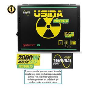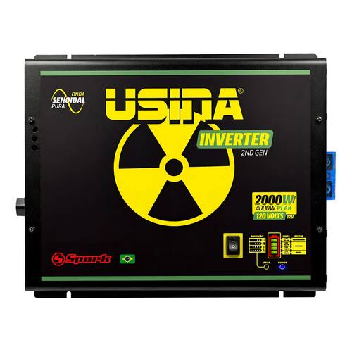 O Inversor de Tensão Senoidal Usina Inverter 2ND GEN 2000w entrada 12v e saída 120v é a solução perfeita para garantir energia estável e confiável em qualquer lugar. Foi desenvolvido para suprir a necessidade do mercado de um inversor de qualidade com saída Senoidal Pura, que fosse desenvolvido e fabricado no Brasil. O inversor USINA utiliza o que há de melhor em tecnologia, seu microcontrolador monitora todo o funcionamento garantindo uma tensão de saída estável e limpa, mesmo com grandes variações na carga conectada em sua saída e variações na tensão de alimentação. Significando que o inversor pode fornecer uma energia elétrica de alta qualidade, sem distorções ou variações significativas, o que é muito importante para equipamentos sensíveis e de alto desempenho. -Corrente e potência aferidos em carga resistiva.-A potência de saída pode variar de acordo com a tensão da bateria e condições de uso. ESPECIFICAÇÕES TÉCNICAS:- Tensão de Operação: 10,5 a 16Vcc;- Corrente de Entrada (Máxima)*: 203A;- Tensão de Saída: 120Vca / +-3%;- Corrente de Saída (Nominal/Pico)*: 16,7A / 33,4A;- Tipo de Onda de Saída: Senoidal Pura;- Frequência de Saída: 60Hz / +-1%;- Potência de Saída (Máxima contínua)**: 2000 Watts;- Potência de Saída de Pico (600mS): 4000 Watts;- Rendimento Típico: 82%;- Cabo de Entrada (Recomendado): 70mm;- Fusível de Entrada (Recomendado): 250A;- Tomada de Saída NBR14.136: 2P+T - 20A;- Peso: 4,60Kg;- Dimensões Totais (AxLxP): 364mm x 285mm x 78mm. Garantia: 12 mesesCONTEÚDO DA EMBALAGEM:-1 Inversor de Tensão 2000w 12v 120v-1 Adesivo Usina-1 Manual de Usuário