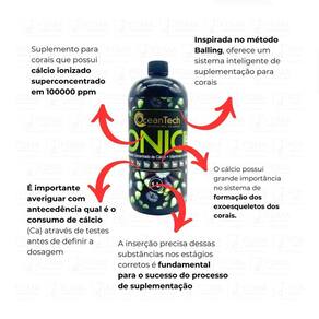 É importante não misturar diretamente os componentes da linha Ionic da OceanTech; primeiro adicione o Ionic Cálcio e aguarde alguns minutos antes de adicionar os demais produtos. Recomenda-se dosar preferencialmente no sump, no compartimento de recalque, e nunca exceder mais do que 3 vezes a dosagem recomendada por dia.