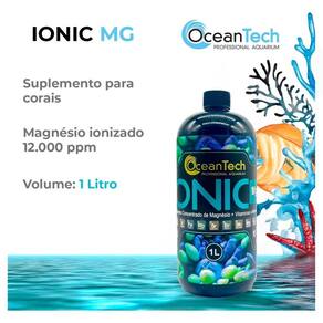 Oceantech Ionic Mg Magnésio é um suplemento para corais que possui magnésio superconcentrado em 12000 ppm. O cálcio possui grande importância para os corais, uma vez que o mesmo interage no equilíbrio cálcio/KH, onde juntamente com os demais componentes da linha Ionic da OceanTech, compõe o terceiro passo dessa suplementação.