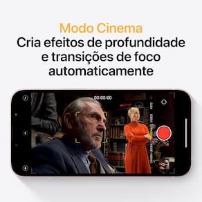 O iPhone 13 tem uma tela superbrilhante projetada para ser resistente. Faz vídeos com qualidade de cinema. Seu chip tem uma velocidade impressionante. E ganhou um aumento notável em bateria.