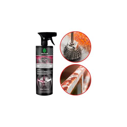 O produto tem ação profunda, agindo nas baixas camadas de diferentes superfícies como: rodas, vidros, latarias, verniz, pinças de freio, motores e partes metálicas. Com altíssimo poder de limpeza, age profundamente na remoção dos pontos mais difíceis, transformando-os em componentes solúveis. O IRON OUT possui um pH neutro, podendo ser utilizado em diversas superfícies na remoção de partículas ferrosas.