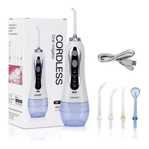 O irrigador oral HF-5 da Azdent é um dispositivo ideal para você cuidar da higiene da sua boca e dos seus dentes, pois consegue remover os restos de comida e a placa bacteriana que a escova ou fio dental não conseguem remover. Não duvide em experimentar todos os seus benefíciosCuide do seu sorrisoCom os seus 5 bicos você poderá realizar uma limpeza completa dos seus dentes, as gengivas, a língua e as partes moles da boca. Isso permitirá que você remova a placa e as bactérias, lute contra a halitose e fortaleça suas gengivas. Especialmente adequado para pessoas com ortodontia, implantes ou coroas, bem como pacientes com necessidades específicas.Simples de usarSeu design leve e portátil lhe dá a praticidade que você precisa para uma limpeza fácil e eficaz. Sua higiene dental perfeita a qualquer hora, em qualquer lugar Marca: Azdent