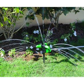 Irrigador giratório 3 jatos dy1014 Tudo oque você precisa pra irrigar seus jardim e hortas Corpo de plástico reforçado; Solução prática para o seu jardim; Movimenta-se pela própria pressão da água; Aspersão regulável dos jatos com um pequeno giro nas extremidades dos 3 braços; Haste com formato próprio para fixação no solo. Disponível na cor verde Medidas: Suporte 20 cm Corpo do jato : 5 centímetros