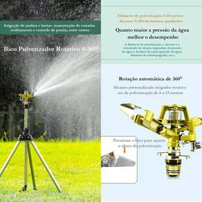 Irrigador Jardim Giratório Circular Engate Rápido Tripé 12m