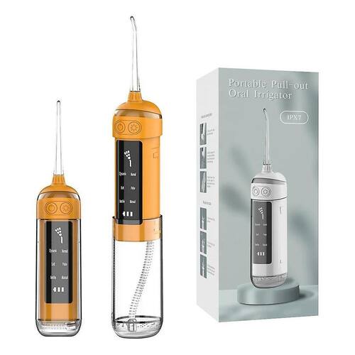 Irrigador oral removedor tartaro water flosser 6 modos Características do produto Tipo de alimentação: usb Capacidade de água: 180 ml É sem fio: sim Cor: laranja Pressão máxima: 40- 140 psi Quantidade de bicos: 4 Quantidade de níveis : 6 É à prova d'água: sim Marca: water flosser Modelo: irrigador oral sem fio Acessórios incluídosPonta raspadora de língua, ponta , ponta periodontal, ponta padrão. Peso e dimensões Largura4 cm Profundidade6 cm Altura17 cm Irrigador oral removedor tartaro water flosser 6 modos Transforme sua rotina de higienização bucal com o irrigador oral. O aparelho oferece cuidado profundo e limpeza excepcional dos dentes, removendo placa bacteriana e alimentos entre os dentes e abaixo da linha da gengiva, alcançando locais onde a escova e o fio dental não chegam. Ideal para quem usa , implantes, pontes, coroas e próteses. Dispõe de seis níveis de intensidade, permitindo escolher conforme sua preferência. Possui um reservatório de água e acompanha quatro tipos de bicos: ponta raspadora de língua, ponta , ponta periodontal e ponta padrão, além de uma ponta padrão adicional. Portátil, leve e fácil de transportar. À prova d'água e com baixo ruído de funcionamento. Benefícios: - rotina de higiene bucal mais saudável; - remoção de placa bacteriana em locais de difícil acesso; - estímulo da circulação sanguínea na região bucal; - higienização otimizada para usuários de , implantes, pontes, coroas e próteses; - ideal para quem sofre com retração gengival; - limpeza precisa e delicada. Instruções de uso: - carregue o produto por 5 horas antes do primeiro uso; - preencha o reservatório com água; - escolha e insira o bico desejado até ouvir o clique; - posicione o aparelho a um ângulo de 90º em relação à linha da gengiva; - pressione o botão de ligar para iniciar a higienização; - após o uso, desligue o dispositivo e remova o bico pressionando o botão de ejeção; - limpe o bico utilizado, esvazie a água do reservatório e guarde o aparelho em local seco e limpo. Características gerais: - bateria com duração de até 70 minutos; - à prova d'água; - pressão de água 40 a 110 psi ; - proteção de água ipx7; Características técnicas de bateria: - duração da bateria varia conforme o nível selecionado 30 a 60 minutos ; - tempo de carregamento: de 3 a 5 horas. Botões e visor: - dois botões: liga/desliga e seleção . - visor com indicação dos níveis de intensidade e luz indicativa de carga; - orifício superior para encaixe dos bicos; - entrada para cabo usb. Ficha técnica: - modelo: l 13 - capacidade do reservatório: 180 ml - pressão da água: 40-140 psi - classificação à prova d'água: ipx7 - dimensões: 17 x 6 x 4cm - peso: 0,28 kg - alimentação: usb bivolt - tempo de carregamento: de 3 a 5 horas - duração de bateria: de 30 a 60 minutos Contém: - 4 pontas: 1 pontas de jato padrão , 1 ponta de limpeza de língua, 1 ponta e 1 ponta periodontal; - 1 cabo usb - 1 saco portátil Marca: Não Informado