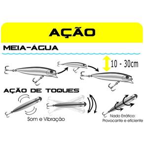Isca Artificial Brava 7,7Cm Cor 24 Marine Sports A Isca artificial Brava 77 da Marine Sports não pode faltar em sua caixa de pesca, por sua eficiência e seu design o que ajuda na captura de predadores de diversas espécies, possui qualidade e eficiência excelente em quaisquer tipos de rios, desde os rios com água parada até os com correntezas, podendo ser Utilizado também em lagos, represas, pesqueiros, mares e outros. Durante o seu arremesso as de aço se desprendem de uma trava magnética deslocando-se para as extremidades da isca e assim tendo mais alcance e precisão em seu arremesso, quando a isca cai na água essas voltam a sua posição inicial garantindo um nado perfeito para atrair a presa. ESPECIFICAÇOES: Marca: Marine Sports Modelo: Brava 77 Tamanho: 7,7cm Peso: 7,2g Cor: 24 - Amarelo Ação: Meia-água Floating Com Rattlin Sistema XLC Xtreme Long Cast Marca: Não Informado Ean: 7898480957401