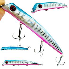 Iscas artificiais de última geração, de movimentação extrema lado a lado, com características de arremesso formidáveis. Garatéias em Aço Carbono. Com pintura a laser holográfica para refletir a luz. Olhos 3D holográficos para atrair grandes predadores Comprimento : 12.6cm. Peso Aproximado : 16.3 gramas. Profundidade de nado: Isca de Superfície. Ideal para todos os tipos de peixes predadores, tais como Robalos, Black Bass, Tucunarés, Traíras, Dourados, Badejos, Garoupetas, anchovas, Tabarana, Matrinxãs entre outros. Marca: H FIshing