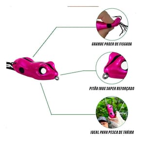Fabricada com borracha de altíssima qualidade, a Isca Artificial Frog Monster.Z 70 - Metallic Magenta possui um sistema anti-enrosco perfeito, garantindo um fácil trabalho por entre a vegetação aquática. Seu anzol reforçado e super afiado oferece maior resistência durante a pesca.