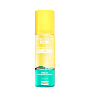 ISDIN HydroLotion FPS 50 é um fotoprotetor bifásico que, proporciona uma ação hidratante de secagem imediata e de efeito refrescante. Confere à pele um aspecto mais flexível, elástico e mais luminoso. Sua fórmula inovadora desintoxica e revitaliza a pele do dano provocado pela radiação solar.