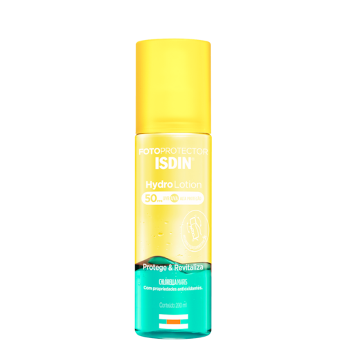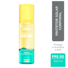 Protetor solar corporal para todos os tipos de peles. Com dupla ação, ISDIN HydroLotion FPS 50 oferece proteção intensa e revitaliza a pele.