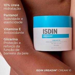O Ureadin Cream 10 da ISDIN é um creme nutritivo voltado para peles secas a muito secas e sensíveis. Formulado com 10% de ureia, ele promove hidratação profunda por até 48 horas, alivia o desconforto do ressecamento, melhora a elasticidade e fortalece a barreira cutânea com aplicação contínua. Características principais: Ureia 10%: potente umectante que retém a água na pele e reduz coceira em até 83%, aliviando o repuxamento imediato. Ação prolongada: hidratação contínua por até 48 horas; aumento de firmeza e elasticidade. Textura cremosa: acabamento sedoso, rápida absorção e sem resíduo oleoso. Ativos complementares: contém glicerina, pantenol, óleo de abacate, vitamina E e alantoína, que nutrem, acalmam e protegem a pele. Fórmula gentil: hipoalergênica, sem parabenos, indicada para peles sensíveis. Indicação: Peles secas, muito secas, ásperas ou com tendência a descamação Ideal para cuidados das áreas mais ressecadas: pernas, braços, cotovelos, joelhos e pés Recomendado para peles sensíveis que precisam de conforto e hidratação profunda Modo de uso: Aplicar 1 ou 2 vezes ao dia na pele limpa e seca, massageando até total absorção Uso contínuo melhora firmeza, hidratação prolongada e alívio imediato do repuxamento Cuidados: Uso exclusivamente externo Evitar contato com olhos e mucosas; em caso de contato, enxaguar Suspender o uso se ocorrer irritação Conservar em local fresco, ao abrigo da luz, longe do alcance de crianças Marca: Não Informado Ean: 8429420305489