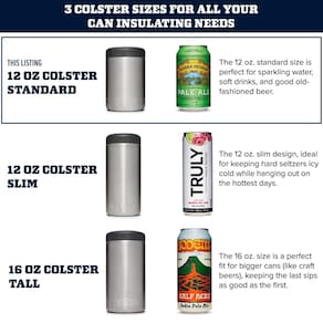 YETI COLSTER Como um dos nossos produtos emblemáticos e testados na linha Rambler, este amado isolador de latas foi devido a um pouco de atenção inovadora. Ao longo dos anos, nossa tecnologia e capacidades evoluíram – assim como as latas que encontramos nas lojas. Hoje em dia, temos vinho em latas, cafés gelados altos em latas, seltzers cravejados em latas, bons meninos altos à moda antiga (novamente, em latas) e, claro, a cerveja de pescoço longo em espera (mas em vidro). Portanto, um isolador de lata Colster não serve para todos. Esta nova suíte cuida disso. Do lado de fora, você notará um design mais elegante, DuraCoat Color que se estende por toda a extensão e tamanhos variados de juntas para garantir que cada tipo de lata seja protegido. Além disso, a junta de carga e bloqueio atualizada requer apenas um quarto de volta simples para fechar o negócio. É uma mudança simples que causará um grande impacto. E, claro, eles são isolados com um vácuo de parede dupla para que suas bebidas permaneçam muito, muito frias. O YETI Standard Colster 2.0 é bom para: latas padrão de 340 g, gola comprida, porta-malas, temperaturas de três dígitos e festivais de churrasco. O YETI Tall Colster é bom para: latas de 473 g, pescoços longos, meninos altos, dia de jogo, churrascos no quintal e concertos. O Colster YETI Slim é bom para: latas finas de 355 ml, seltzers espigados, vinho enlatado, finais de semana de cabine e dias de praia. O ajuste da lata e da garrafa pode variar de acordo com a forma - O YETI Standard Colster 2.0 é bom para: latas padrão de 340 g, pescoços longos, porta-malas, temperaturas de três dígitos e festivais de churrasco. O ajuste da lata e da garrafa pode variar de acordo com a forma - A junta de carga e bloqueio requer apenas um quarto de volta simples para selar o negócio - Os colsters são isolados com um vácuo de parede dupla para que suas bebidas permaneçam muito, muito frias - O aço de calibre grosso YETI contribui para bebidas mais fortes e duráveis e a cor Duracoat é feita para a natureza sem rachaduras ou lascas - O YETI Standard Colster 2.0 pode ser lavado na lava-louças e mede: 7,6 x 10,8 cm