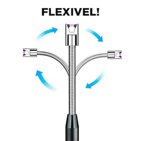 Características Gerais do produto Acendedor elétrico a plasmetrosa, recarregável via USB, cometros arco flexível e rotação 360 graus. Possui desligametrosento autometrosático de 10 segundos e 4 níveis de indicação de carga.