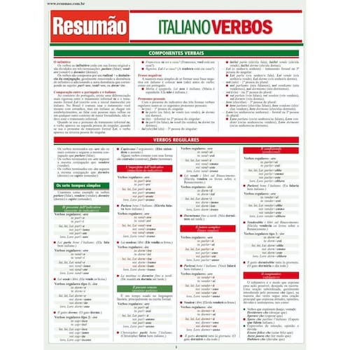 O Resumão Italiano Verbos traz as principais dicas para que o leitor aprenda a usar corretamente os verbos na língua italiana. Nele você vai encontrar: os sete tempos simples e compostos dos verbos regulares, os verbos irregulares e super irregulares, os quatro padrões verbais irregulares, as construções essenciais e os verbos comuns essenciais. Rápido para aprender, fácil de consultar, o Resumão é um excelente guia para quem estuda ou tem vontade de estudar italiano.