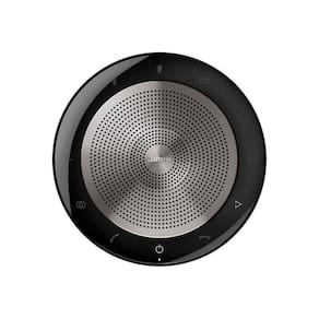 Jabra Speak 750 vem com um Adaptador Bluetooth Jabra Link 370 UC PARA conexão a um computador. Ao usar o adaptador, o viva-voz tem uma gama sem fio de quase 100 pés. Quando não usa o adaptador, ele tem uma gama sem fio de 32 pés. A bateria tem um longo tempo de conversa de 10 horas que permite usá-la o dia todo. Recarregue via USB.
