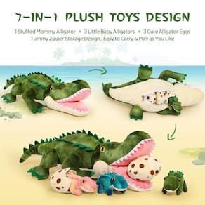 ESCOLHENDO OS MELHORES BRINQUEDOS —— CROCODILO DE PELÚCIA PARA MAMÃE COM SEUS 3 FILHOTES DE CROCODILO + 3 LINDOS OVOS DE CROCODILO 🐊 Material: 100% algodão PP, tecido macio de pelúcia 🐊 Cor: 1 bicho grande de pelúcia de crocodilo + 3 bichinhos de pelúcia de jacaré louro (rosa, azul, verde) + 3 lindos ovos de crocodilo 🐊 Tamanho: 23,6" de comprimento, mamãe jacaré, Brinquedo de jacaré para bebês de 5 polegadas, ovos de crocodilo de 4" POR QUE ESCOLHER NOSSOS BICHOS DE PELÚCIA DE JACARÉ? 🐊 JACARÉ DE PELÚCIA INTERATIVO 7 EM 1 BULKA, um jacaré grande com 3 brinquedos de pelúcia de minicrocodilo e 3 lindos ovos de crocodilo para bebês que incentivam a brincadeira de fingir que as crianças aprendem carinho e responsabilidade, essenciais para a construção de relacionamentos e o desenvolvimento social, cognitivo e físico positivo. 🐊 Brinquedos de jacaré de pelúcia seguros Nosso conjunto de brinquedos de crocodilo de pelúcia é feito de tecido macio de pelúcia, 100% algodão PP macio, olhos duplamente reforçados em padrões rígidos de segurança de alta qualidade. Sem derramamento, sem desbotar, seguro, fofo, supermacio e confortável ao toque. Perfeito para a maioria das idades. 🐊 Brinquedos de crocodilo macios e fofos. Incrivelmente macios! Sinta o toque suave que não agride a pele, receba um abraço caloroso, acalme suas emoções, libere o desconforto e fique mais feliz. Os brinquedos de jacaré de pelúcia macia não são apenas ótimos parceiros para contar histórias, ler e brincar, mas também são um grande travesseiro de jacaré supermacio para dormir. DICAS DE CUIDADOS 🐊 1. Lavável à mão e à máquina! Esses crocodilos de pelúcia são fáceis de limpar e lavar. Recomendamos que você os coloque em um saco de roupa suja e depois os lave delicadamente na máquina em água fria. 🐊 2. Por motivos de embalagem e envio, o grande brinquedo de pelúcia de jacaré enrugará e se comprimirá quando for aberto pela primeira vez. Coloque-o na secadora em fogo alto por um tempo, o brinquedo de jacaré verde ficará cheio e bonito como nas fotos. -?BRINQUEDO DE PELÚCIA ENGRAÇADO 7 EM 1?Bem-vindo ao Cute Alligators World! Grande bicho de pelúcia de crocodilo verde com 3 filhotes de jacaré e 3 lindos ovos de crocodilo em sua barriga com zíper. Os brinquedos de jacaré de pelúcia 7 em 1 são adequados para compartilhar e brincar juntos, incentivando brincadeiras de fingir, que ajudam as crianças a promover habilidades motoras e sociais, estimular a imaginação, a criatividade, aumentar a autoestima, a confiança e aprender a amar -?SUPERMACIO E SEGURO?Linda pelúcia de crocodilo os brinquedos são feitos de tecido macio de pelúcia curto, preenchido com algodão PP de alta qualidade, dentes e escamas macios não tecidos, seguros para crianças, e um zíper liso sem pequenos itens que podem cair facilmente. A massa de jacaré de pelúcia supermacia é uma superfície lavável, não desbota e não desbota. Seguro para todas as idades -?PARCEIRO PERFEITO?É divertido ajudar a mamãe jacaré grande de 23,6 polegadas a eclodir seus ovos de crocodilo bebê de 4" e comprar minicrocodilos de cerca de 5"! Esses brinquedos de pelúcia de crocodilo com rostos fofos, tamanho perfeito e design de armazenamento com zíper na barriga são incríveis! Perfeito para todas as idades brincarem e carregarem. Nunca se preocupe em se sujar. Lavável à mão ou à máquina! Certifique-se de brincar, abraçar e dormir com seus grandes brinquedos de pelúcia de jacaré e mini jacaré, como quiser! -?MELHOR PRESENTE?Irresistivelmente legal! Os jacarés realistas com bebês são populares em todas as idades. A decoração de jacaré de pelúcia é uma decoração ideal para quarto, berçário, festa e um presente atraente para crianças, especialmente para amantes de crocodilos no aniversário, chá de bebê, Dia das Crianças e Natal. O brinquedo de pelúcia de crocodilo de pelúcia será seu brinquedo de pelúcia favorito. Definitivamente, uma surpresa diferente! - ?? Sobre MoriSmos & Warm Tips: Obrigado por escolher nossos crocodilos de pelúcia. Fazemos o nosso melhor para atender às suas expectativas. Se você tiver alguma dúvida. Sinta-se à vontade para entrar em contato conosco, responderemos o mais breve possível. Dicas: O grande bicho de pelúcia de jacaré ficará mais cheio e bonito se colocado na secadora em fogo alto por um tempo