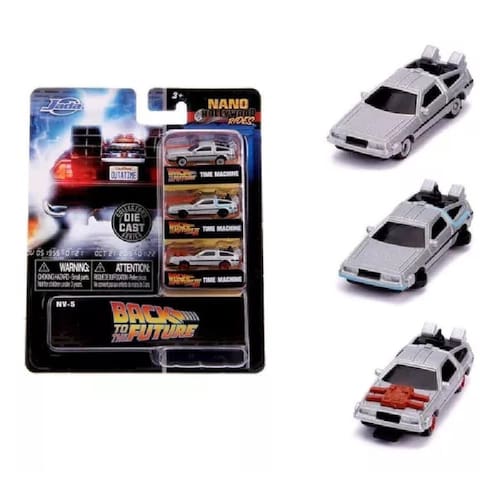 Modelo: jada nano hollywood rides carros de volta para o futuro Código de barras: 801310315835 Marca: jada Série: de volta para o futuro Idade: 3+anos Medidas da embalagem cxlxa : 3x14x17cm Homologação Inmetro: 6242/2020-BRI-1
