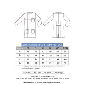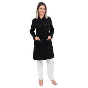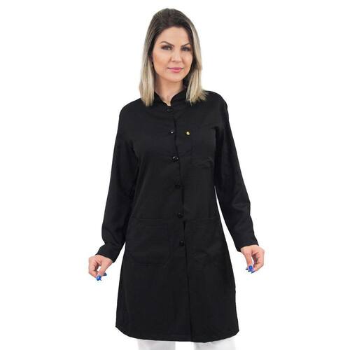 Jaleco feminino manga longa ACINTURADO é confeccionado em Microsarja, tecido 100% poliéster.