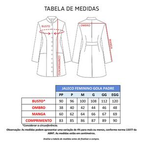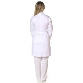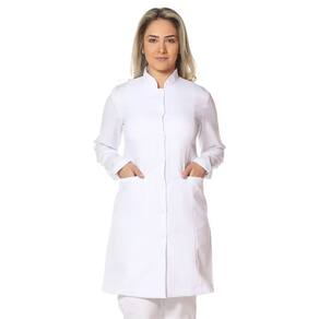 Jaleco Feminino ACINTURADO manga longa branco é confeccionado em Gabardine, tecido 100% poliéster Twill.