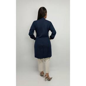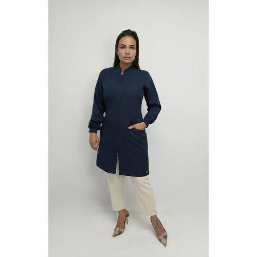 Especificações: Jaleco Profissional Feminino em Alfaiataria Manga Longa - Azul Marinho
