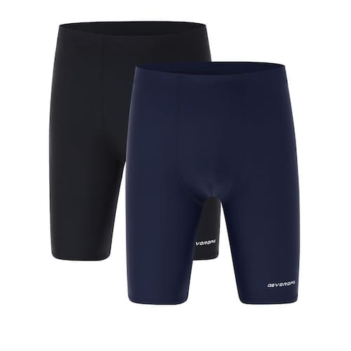 DEVOROPA Bermuda de natação juvenil para meninos competitiva roupa de natação esportiva secagem rápida shorts de natação FPS 50+, Pacote com 2 - preto/azul marinho - Tecido de secagem rápida: os shorts de natação para meninos são feitos de tecido respirável e de secagem rápida, o que pode proporcionar aos seus filhos uma experiência de uso fresca e confortável. Consulte a tabela de tamanhos na última imagem para escolher o tamanho correto - Ajuste ajustável: estes pijamas de natação para meninos têm um cordão ajustável embutido na cintura que pode ser ajustado para o ajuste perfeito para facilitar o movimento, dando ao seu maiô um melhor ajuste e proporcionando segurança perfeita enquanto nada - Conforto para natação: Projetado com uma construção leve de costura plana que reduz a irritação do atrito, estes calções de banho para meninos fornecem mais suporte e menos arrasto, são confortáveis de usar e melhoram a velocidade de natação do seu filho na água - Proteção solar: Estes trajes de banho para meninos são feitos com tecido ultraleve FPS 50+ para proteger contra os raios UVA/UVB nocivos do sol - Ocasiões: estas roupas de banho para meninos são perfeitas para treinos de equipes de natação, encontros de natação, aulas de natação, treinamento para aprender a nadar e todos os tipos de atividades aquáticas ao redor da piscina ou praia no verão