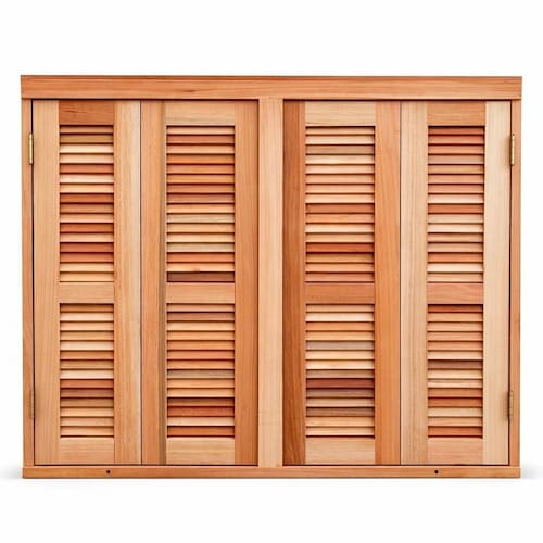 Janela de correr em madeira natural de eucalipto premium selecionado, com venezianas pantográficas que garantem controle de luz, ventilação e privacidade. Possui trilhos de alumínio, ferragens em tom ouro velho e acabamento elegante. Produto entregue pronto para instalação, ideal para quartos e projetos que valorizam conforto, durabilidade e estética.