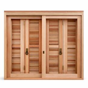 Janela de correr em madeira natural de eucalipto premium selecionado, com venezianas pantográficas que garantem controle de luz, ventilação e privacidade. Possui trilhos de alumínio, ferragens em tom ouro velho e acabamento elegante. Produto entregue pronto para instalação, ideal para quartos e projetos que valorizam conforto, durabilidade e estética.